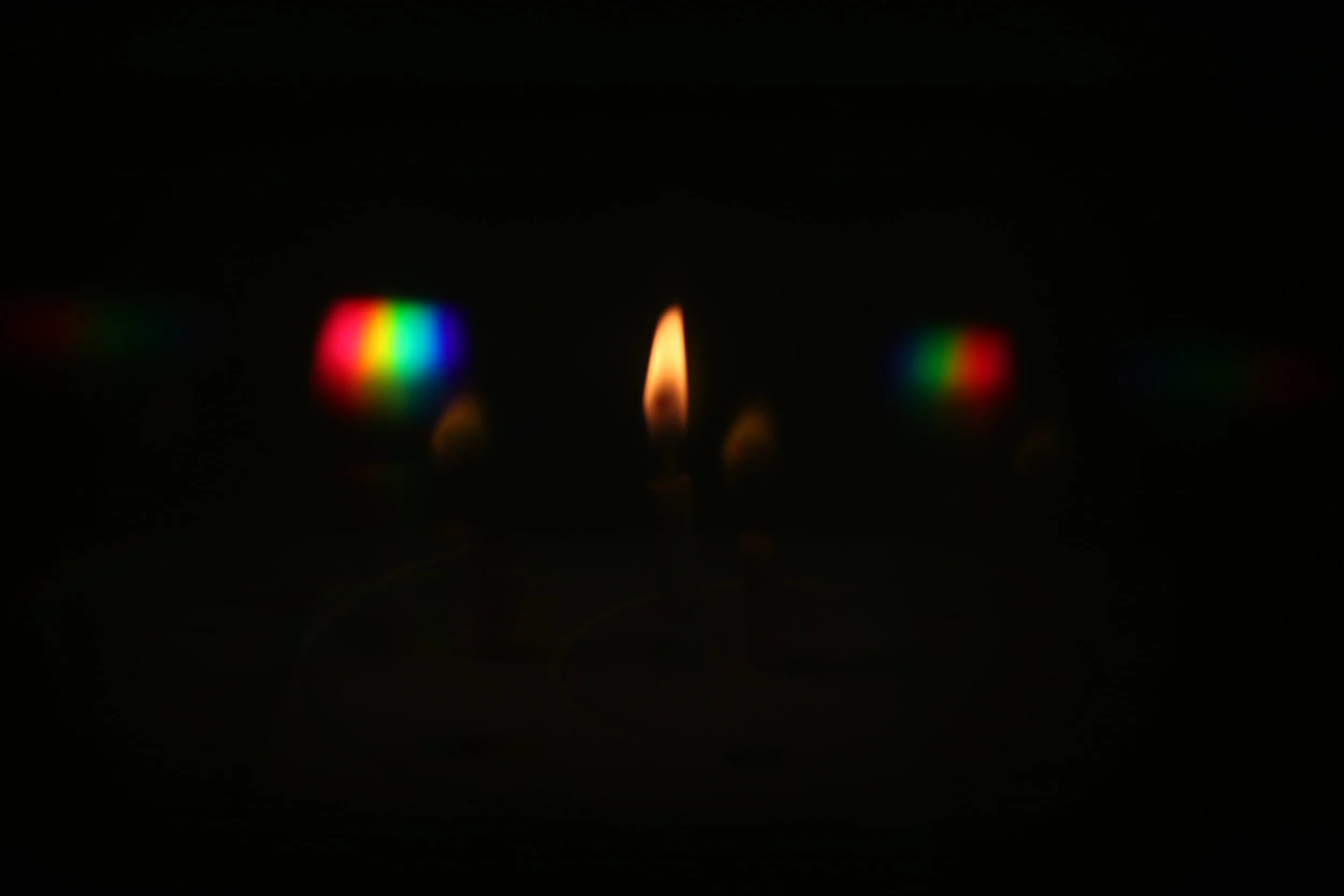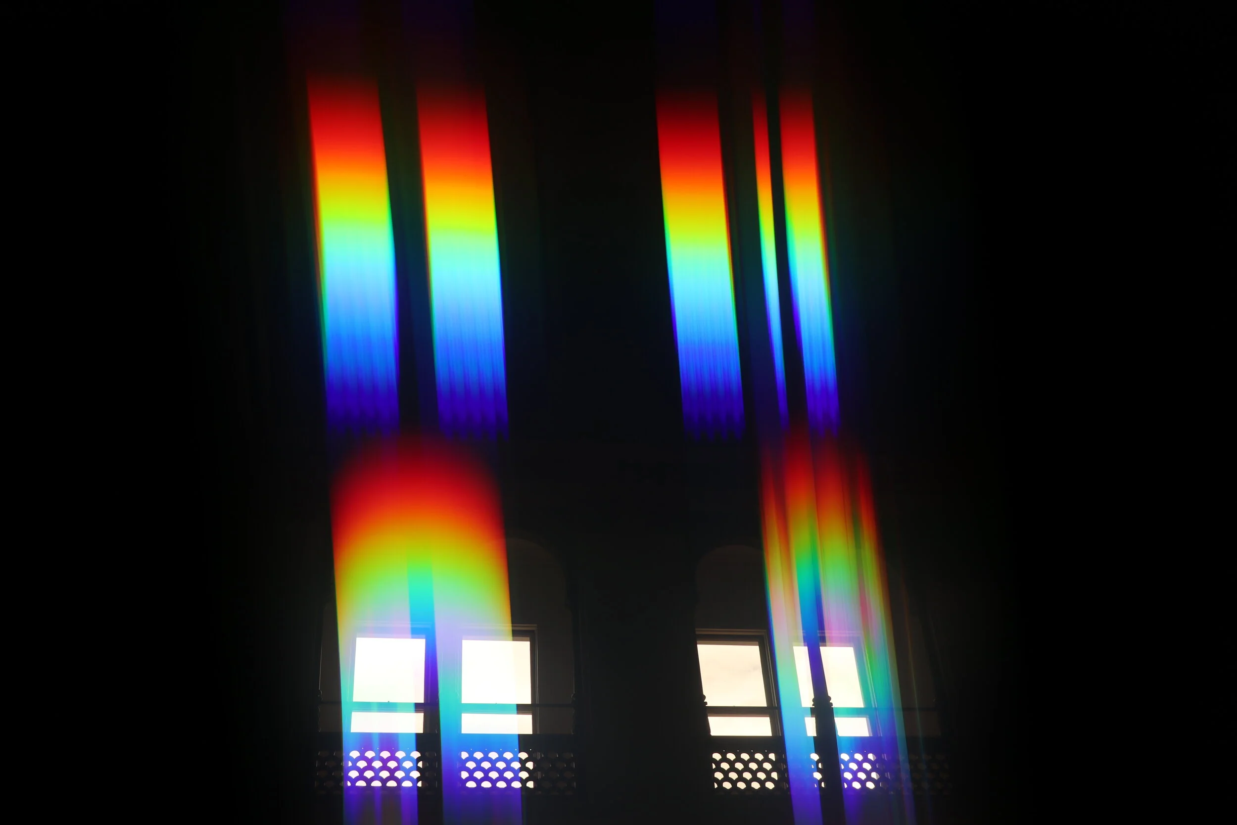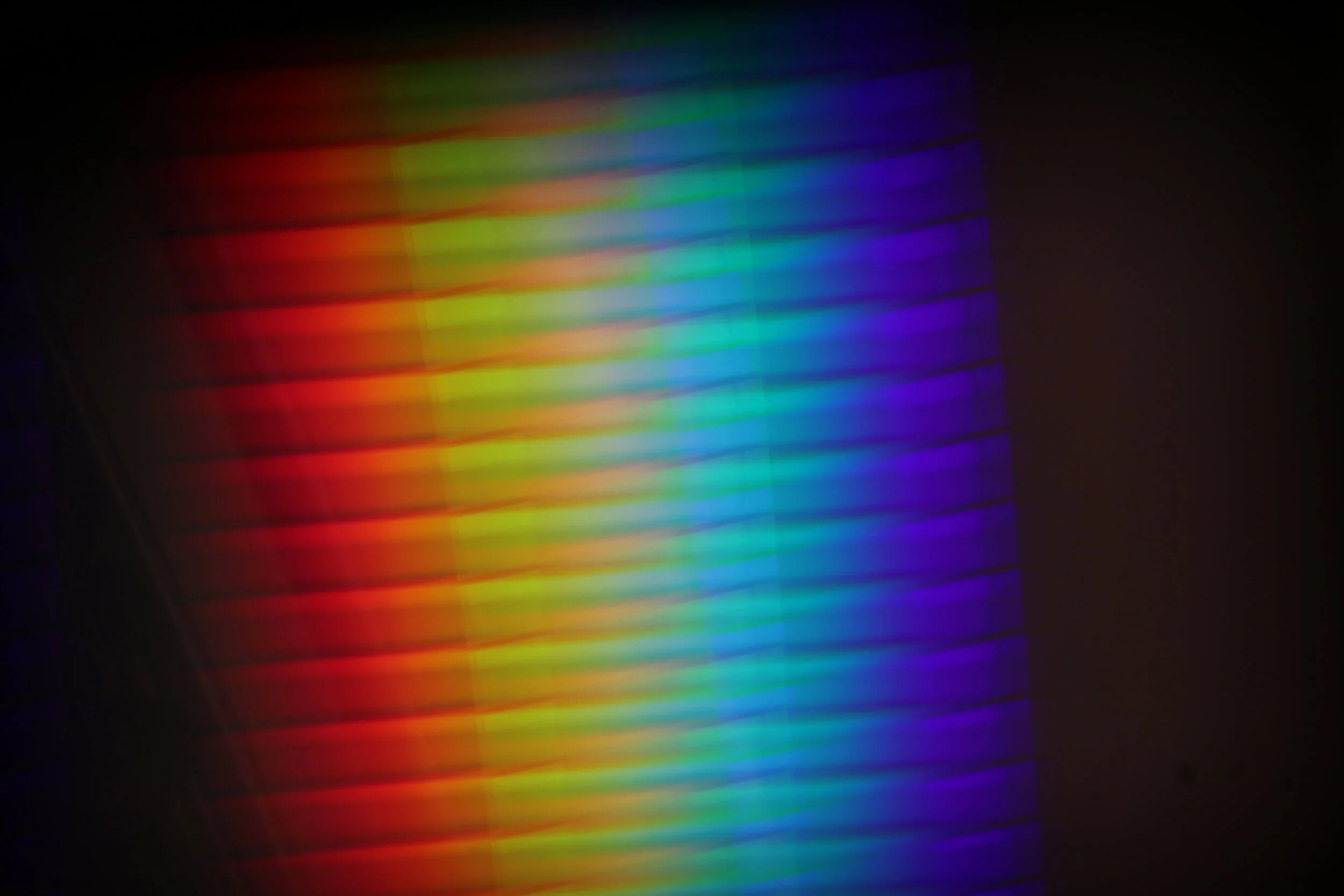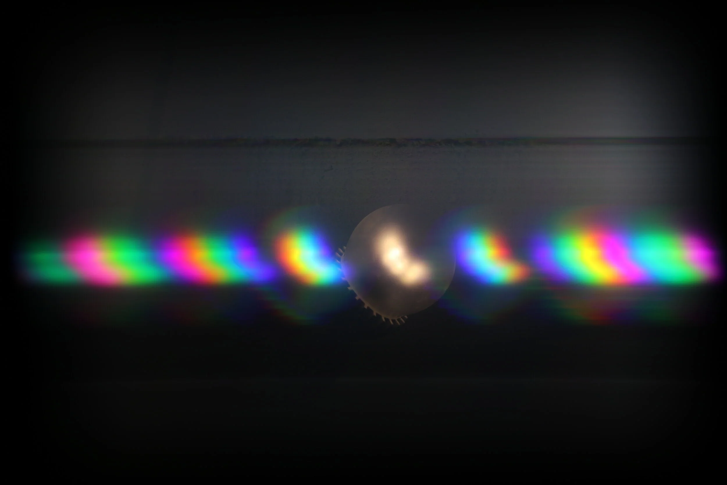 I became interested in the diffraction interference pattern from the chandelier on the library's LCD TV screen. I used this phenomenon as a springboard to launch into my photography project. For my project, I used different diffraction gratings as filters to take pictures that highlight the different diffraction patterns from white light. A diffraction grating consists of a large number of parallel grooves that function like a supersized double-slit interference pattern creating a diffraction pattern from white light. The quality, number, and spacing of the slots is crucial to the grating's performance, affecting the clarity and separation of the diffraction pattern. I was interested in the simple diffraction concept to highlight the invisible forces around us that only need a small piece of glass with 600 slits to reveal. The process was quite simple. I used multiple different diffraction gratings as filters to capture the diffraction patterns from various light sources.