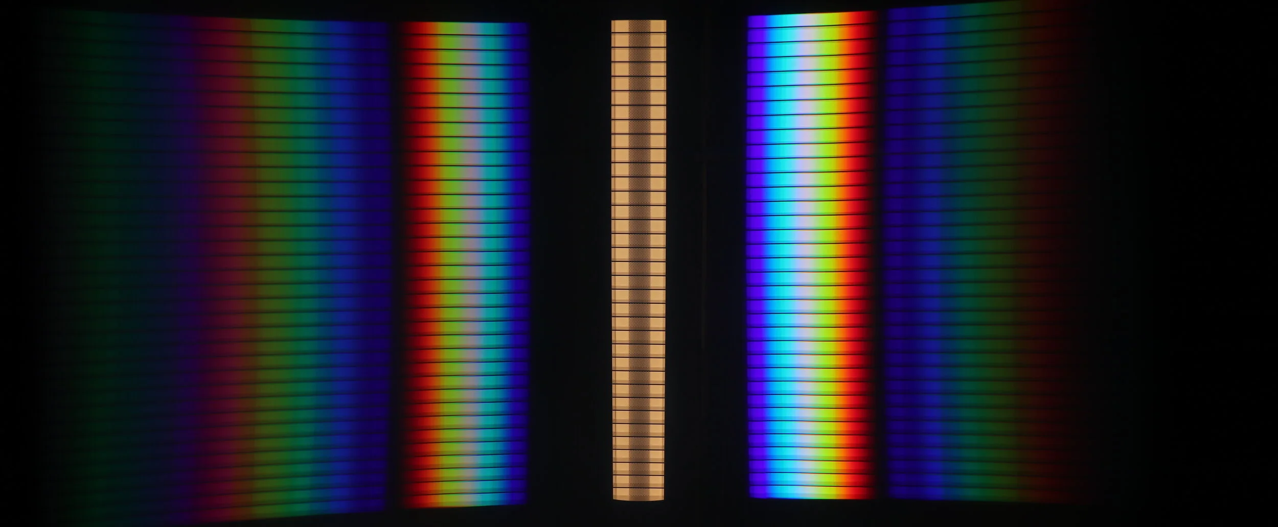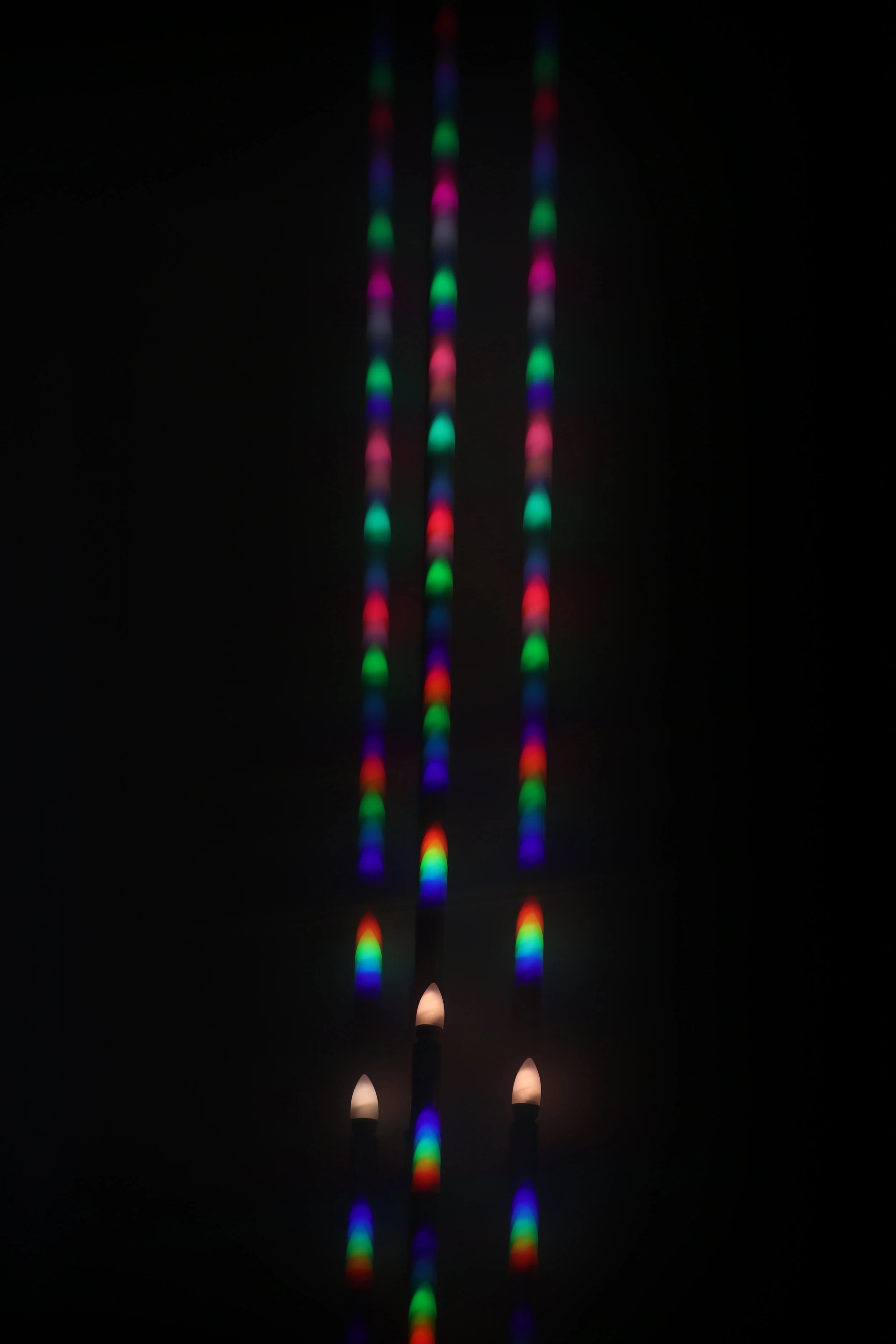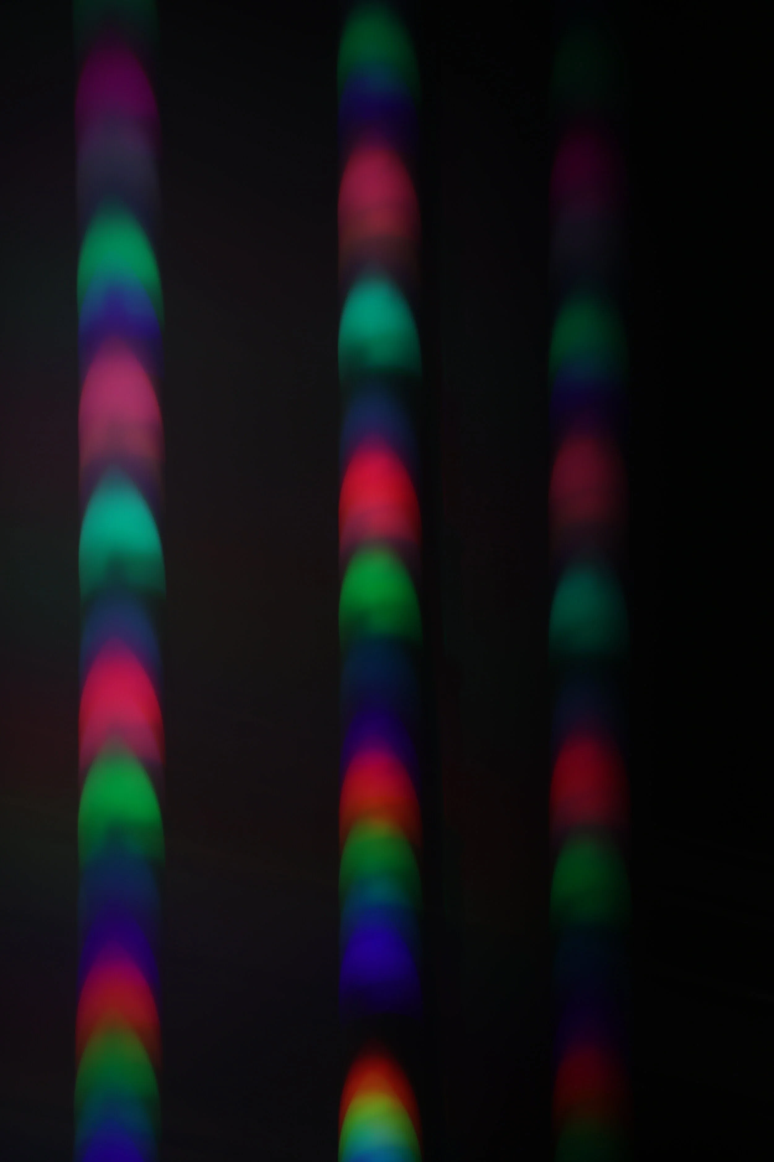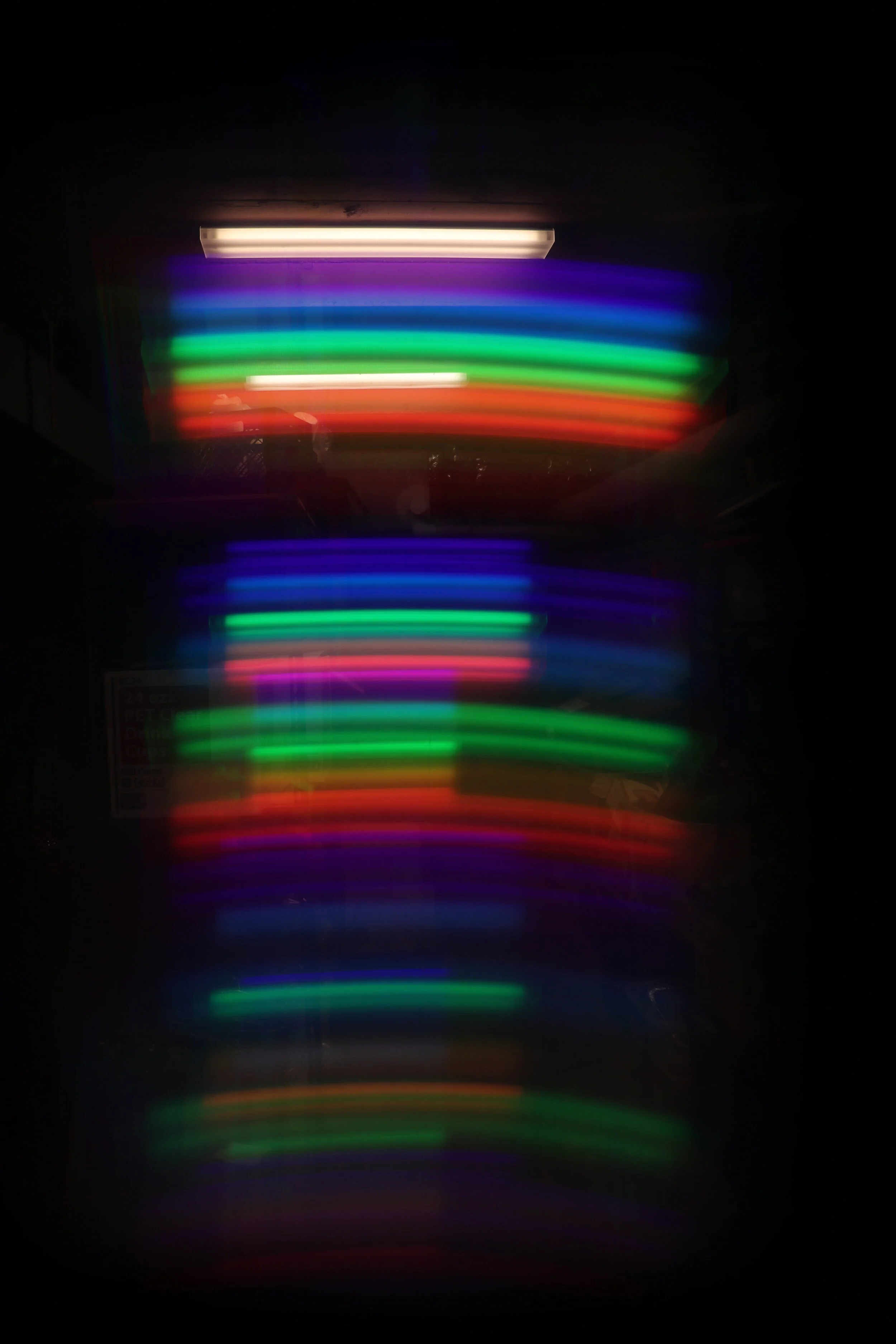I became interested in the diffraction interference pattern from the chandelier on the library's LCD TV screen. I used this phenomenon as a springboard to launch into my photography project. For my project, I used different diffraction gratings as filters to take pictures that highlight the different diffraction patterns from white light. A diffraction grating consists of a large number of parallel grooves that function like a supersized double-slit interference pattern creating a diffraction pattern from white light. The quality, number, and spacing of the slots is crucial to the grating's performance, affecting the clarity and separation of the diffraction pattern. I was interested in the simple diffraction concept to highlight the invisible forces around us that only need a small piece of glass with 600 slits to reveal. The process was quite simple. I used multiple different diffraction gratings as filters to capture the diffraction patterns from various light sources.